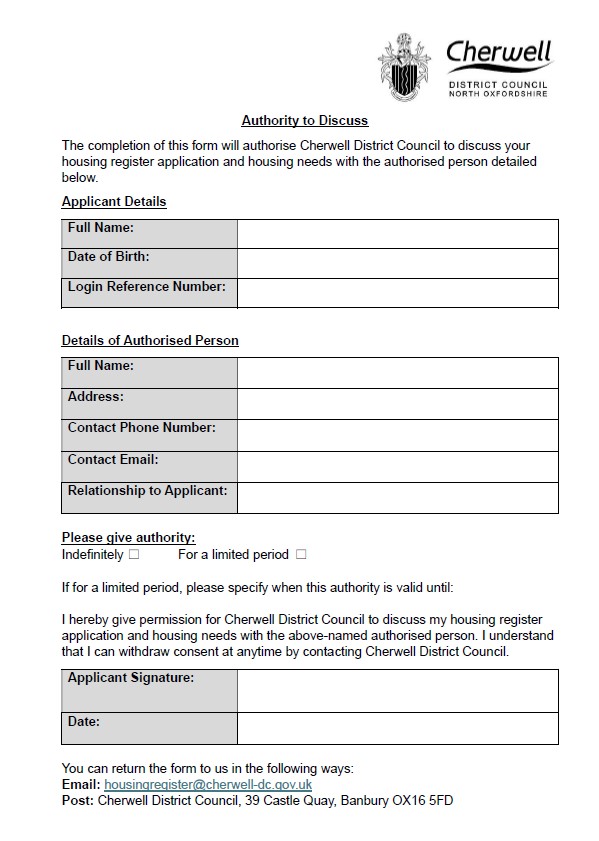 If you wish to give permission for someone to discuss your HomeChoice application with us, please print and return this form.